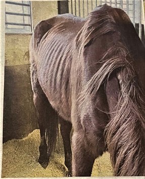 Kort sammanfattning: sex undernärda och vanvårdade hästar i en hage på mellersta Gotland stod utan vatten och foder och blev efter alldeles för lång, segsliten pappersdokumentation omhändertagna av Länsstyrelsen. Djurförbud ådömdes ägaren (B-tränare med licens på travbanan) som vanvårdat hästarna. Tre hästar avlivades omgående av djurskyddsskäl, en häst redan på plats (halvdöd) och tre omhändertogs och såldes.