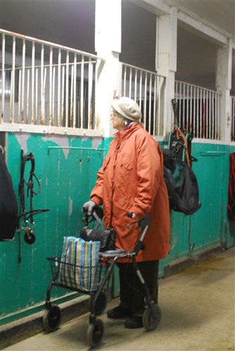 Granskning med lupp, hur gästboxar togs omhand EFTER en storloppsdag, alltså rengöring inför nästa helt vanliga, oglamourösa tävlingsdag. Hade tråkigt. Satt och väntade på mina trav-elever som skrev prov. Studerade gästboxarbetet i 1,5 timme, tyvärr på nära håll, alltså hur rengöringsarbetet gick till.