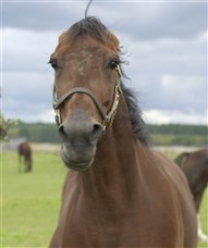 En otroligt sur och grinig märr med skaplig stam som ledsnat på att tävla stod alltid med slickade öron och stirrade stint på mig varje gång en häst från stora skogshagen skulle hämtas eller lämnas. Vad gör man med ett sån sto normalt (ja, just det).