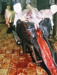 Hovtramp arkivbild Hovtramp/Ilse -slakthuset, slaktad häst